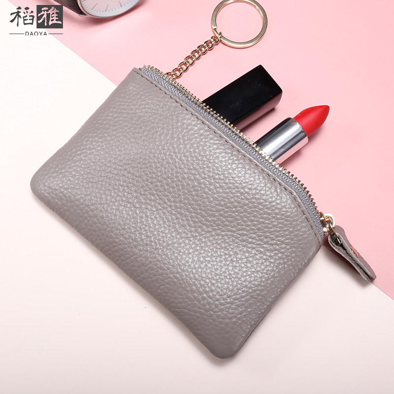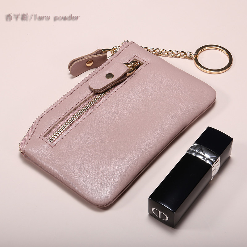 Leather coin purse women's small mini leather short double zipper key simple small wallet coin small coin pocket