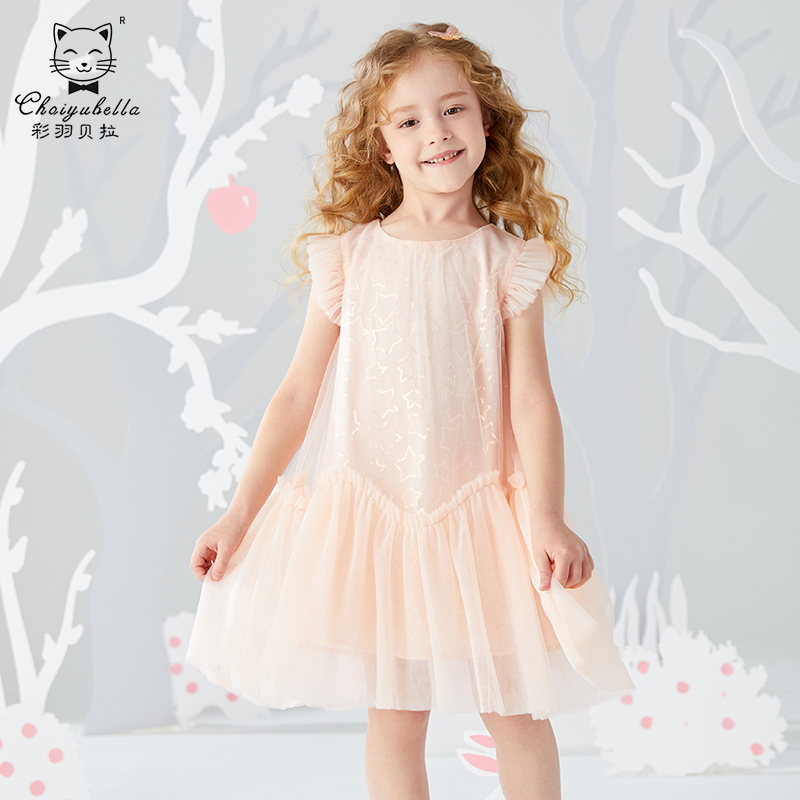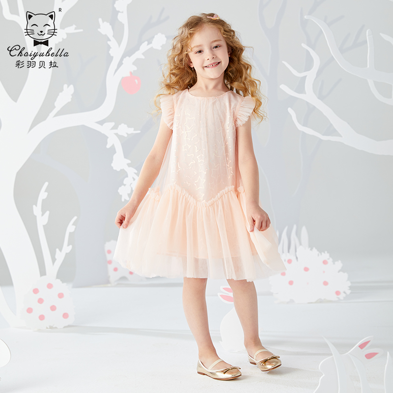 Girls dress summer dress 2021 new foreign school children's skirt dress skirt yarn skirt puff yarn princess dress summer section