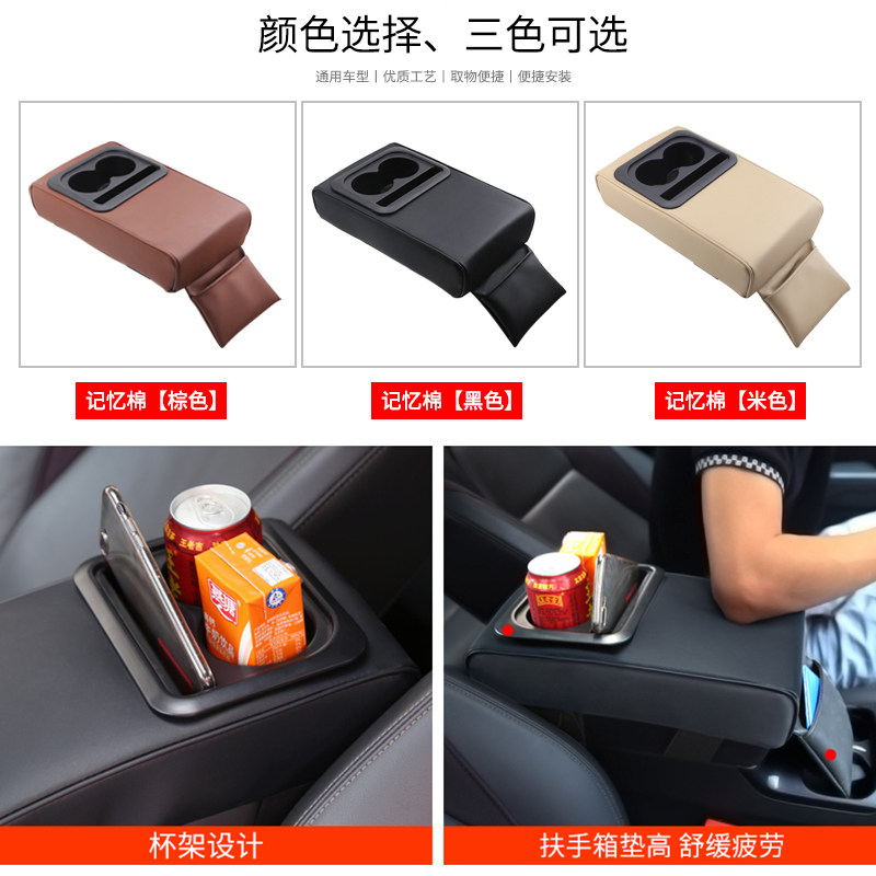Car armrest box heightening pad with water cup holder storage box car multi-function handcuff central handbox sleeve heightened