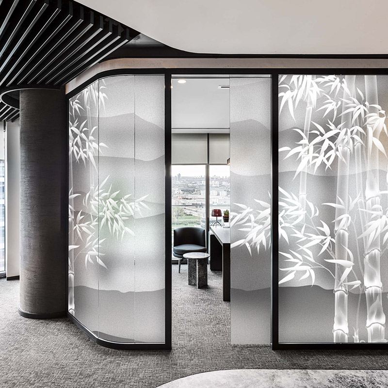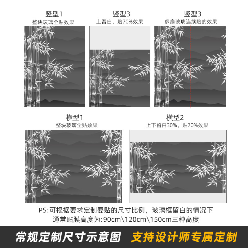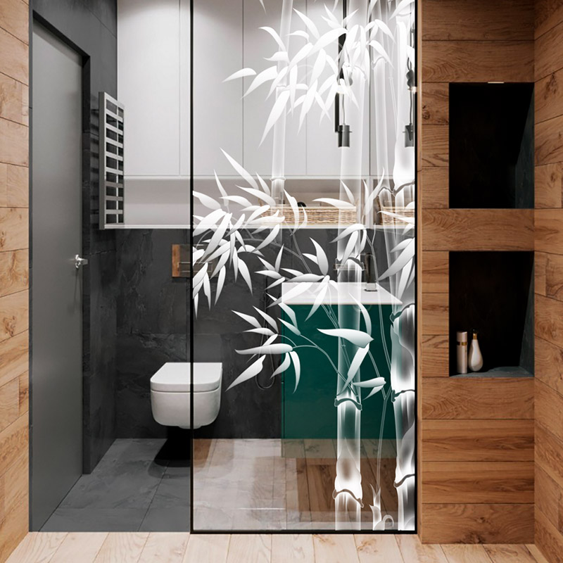 Creative Bamboo Ink China Wind Atmospheric Static Transparency Glass Cling Film Hotel Office Dining Room Chinese Decorative Stickers