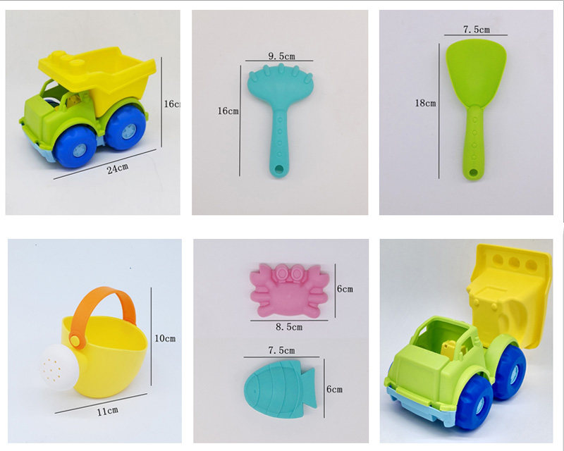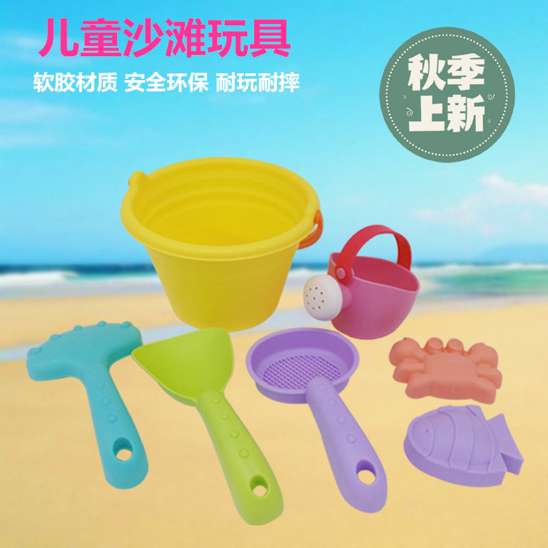 Thickened soft rubber yellow bucket set 7-piece set Thickened soft rubber blue bucket set 7-piece set Thickened soft rubber blue trolley 5-piece set Thickened soft rubber pink trolley 5-piece set Thickened soft rubber green Big