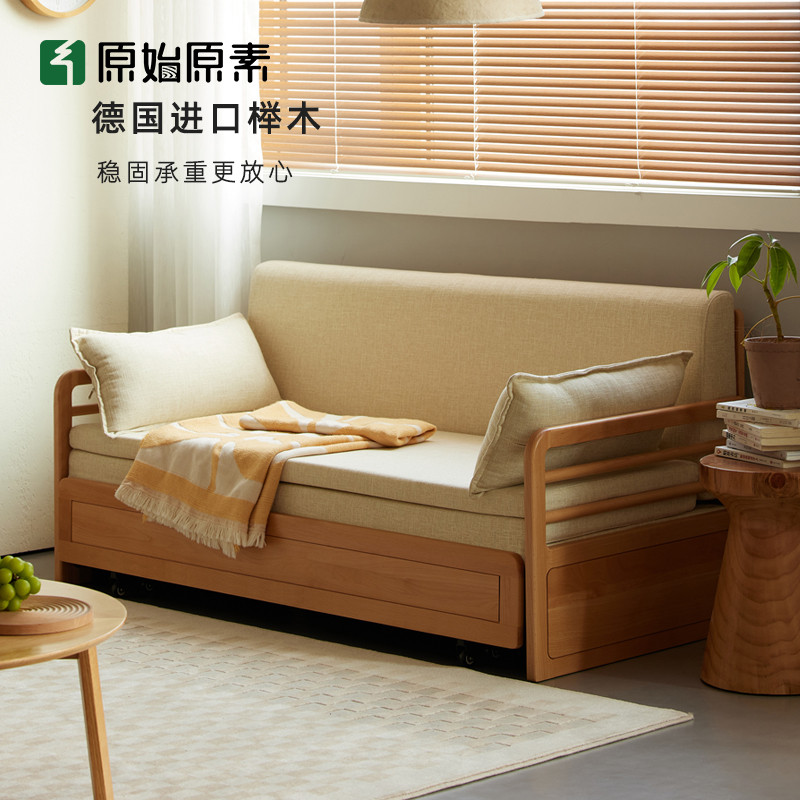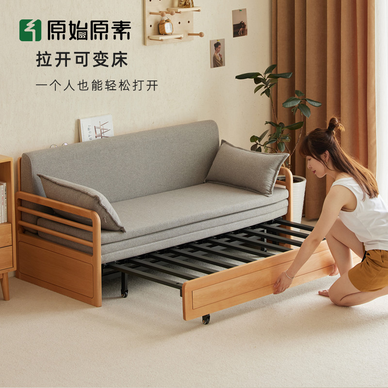 Original original vegetarian solid wood sofa bed folding dual-use minimalist small family type living room telescopic multifunctional sofa G6061-Taobao