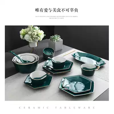 Net Red Diamond Cutlery Set Nordic dish set ceramic bowl plate ins style creative platter home