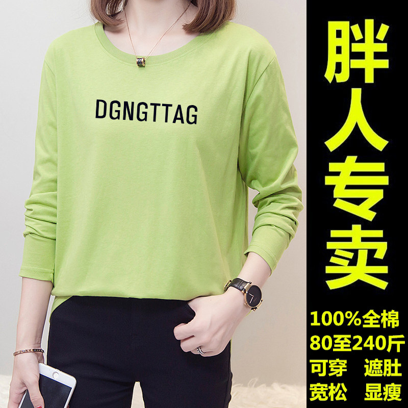 Fat mm long-sleeved T-shirt women's 2021 new spring and autumn loose and thin large size women's cotton top outer wear bottoming shirt