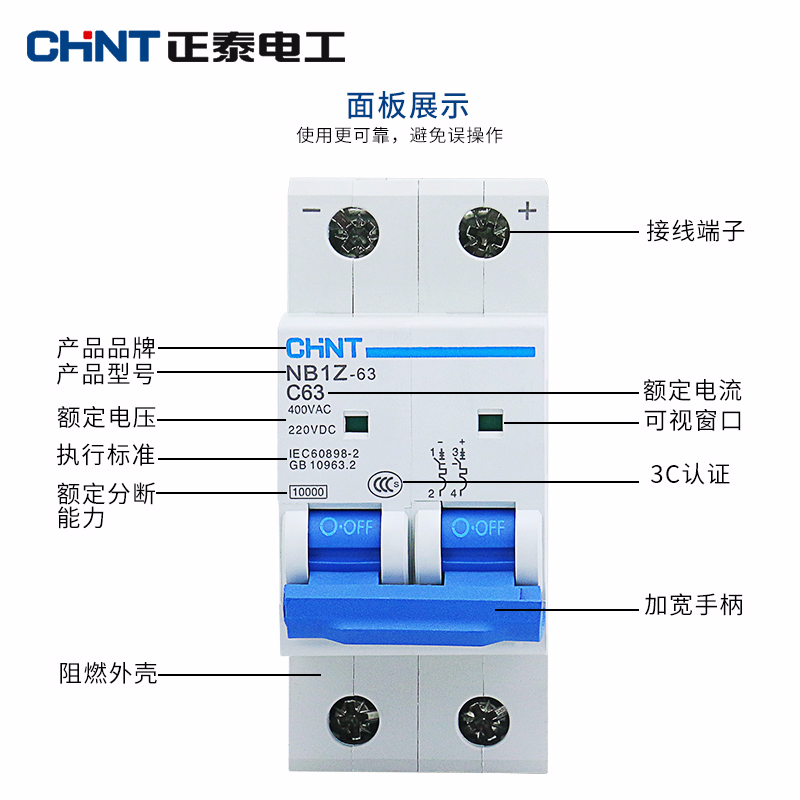 Zhengtai AC DC circuit breaker air switch NB1Z DC220V DC open 1P 2P 63A