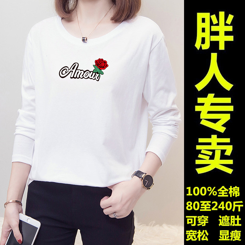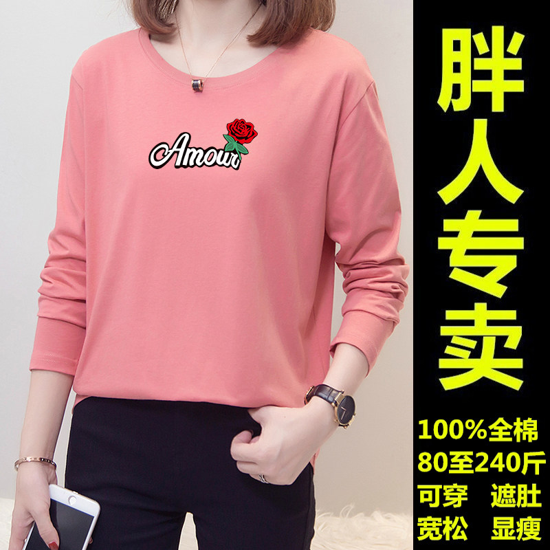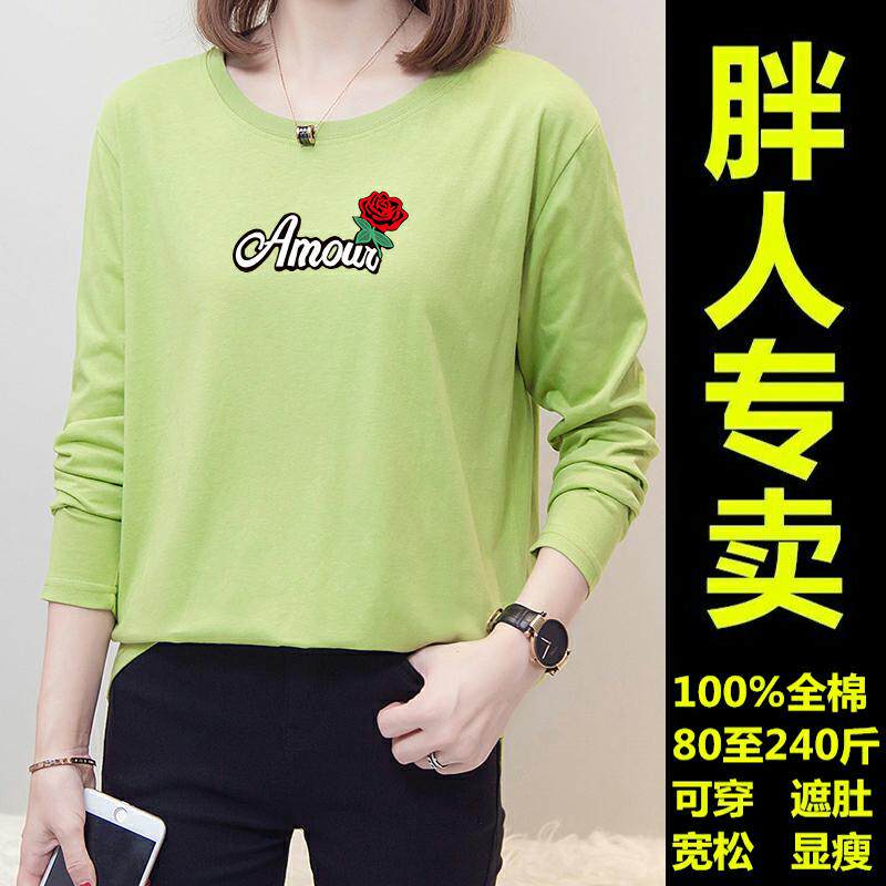 Plus size plus size women's long-sleeved T-shirt women's 2021 autumn new Korean version loose 240 catties fat mm cotton top