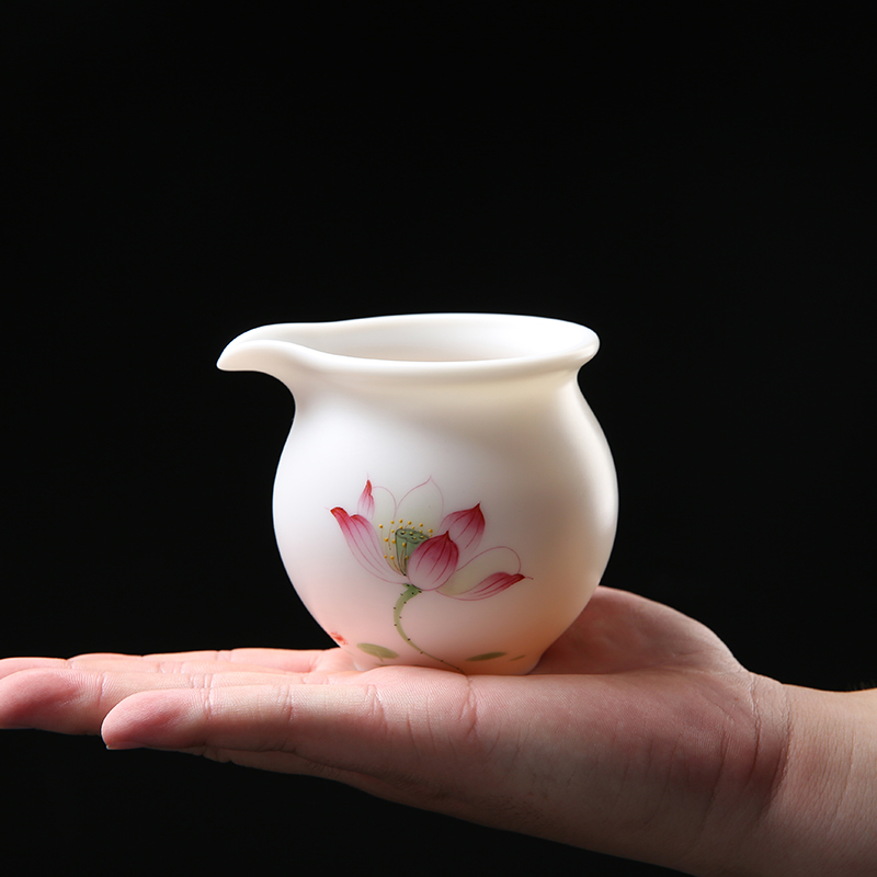 Hand Painted Lotus Goat Grease Jade Porcelain Fair Cup Vegetarian Burnt White Porcelain Tea Road Accessories Public Cup Sub tea Tea Sea Tea Leak Tea
