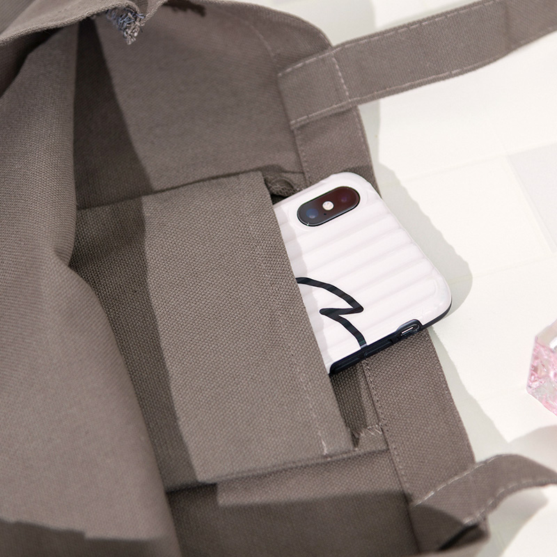 Le clasp Le clasp Korean version of simple design sense male and female students canvas bag female ins one shoulder stick figure large shopping bag