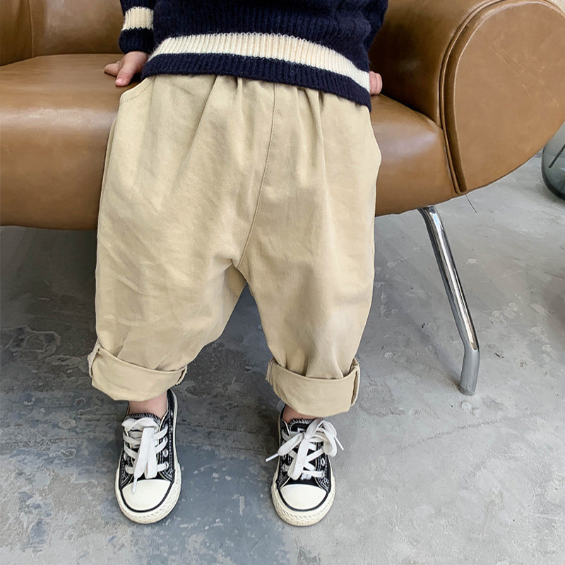 Little Zheng Children's Clothing Baby Pants Khaki Brushed Boys Straight Loose Overalls Trousers Children's Casual Pants