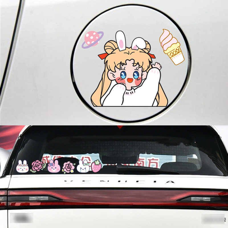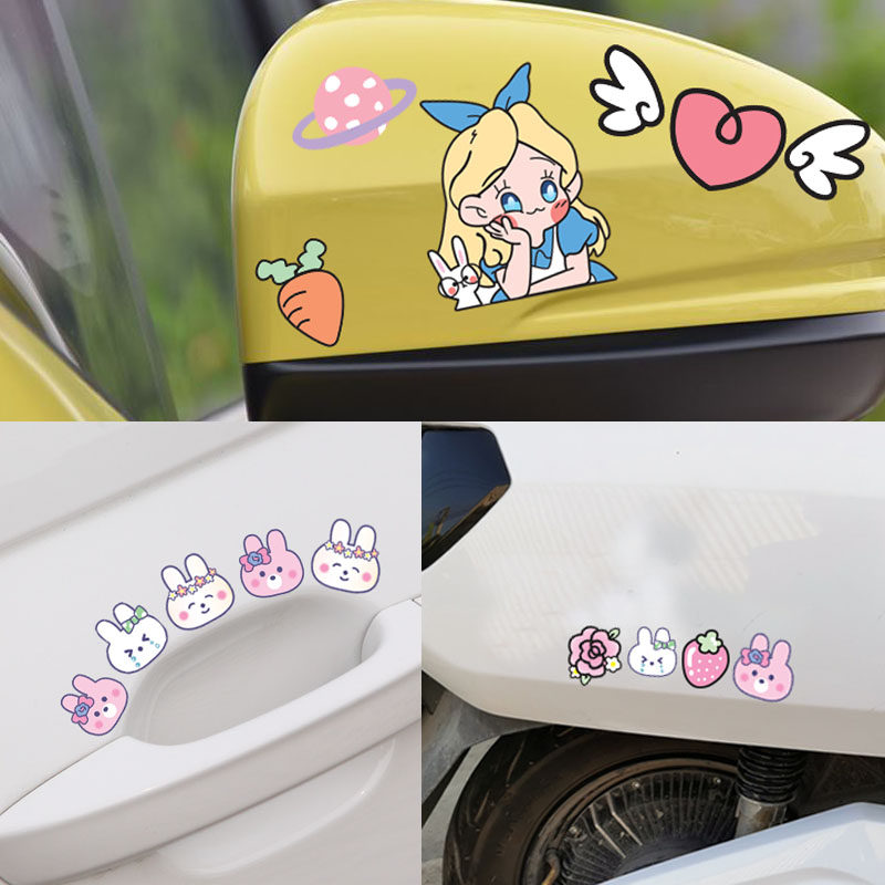 Car stickers cute rear mirror car stickers scratch occlusion waterproof cartoon electric motorcycle stickers art helmet decorative stickers