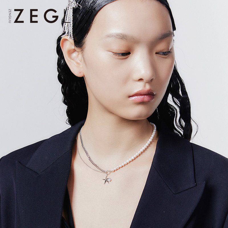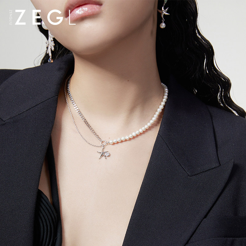 ZEGL designer freshwater pearl starfish necklace Female summer light luxury niche simple temperament clavicle chain accessories