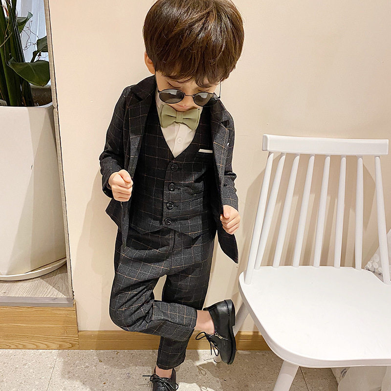 2020 Spring and Autumn tide treasure children's classic British boy's dress Children's suit three-piece set Flower girl's dress set