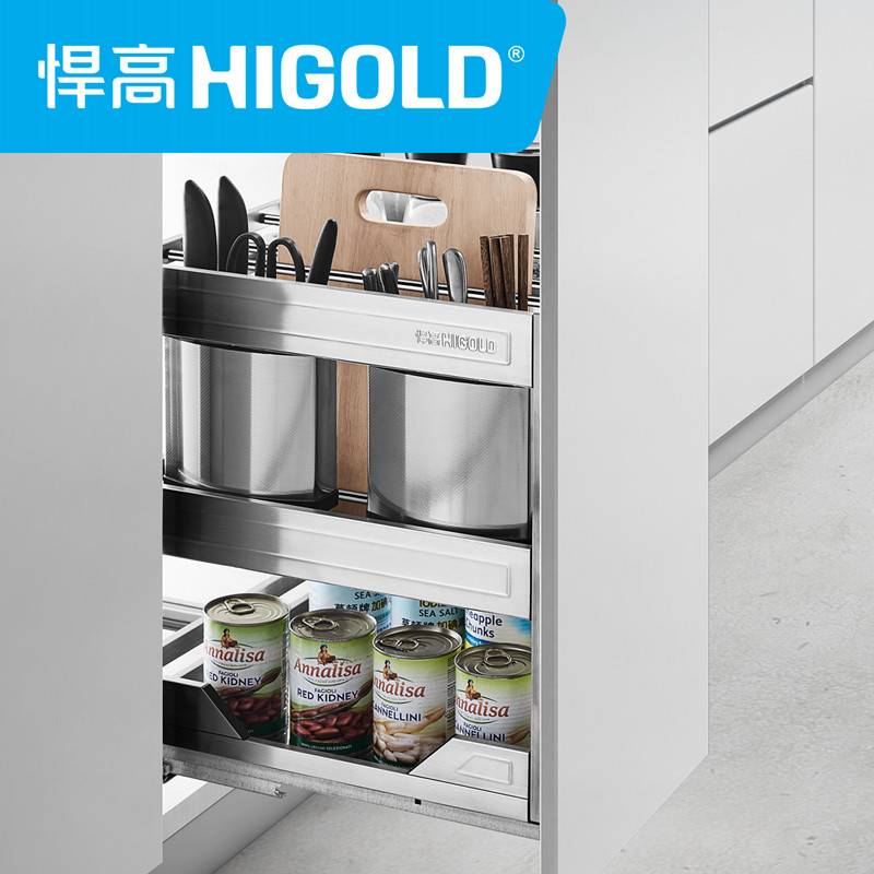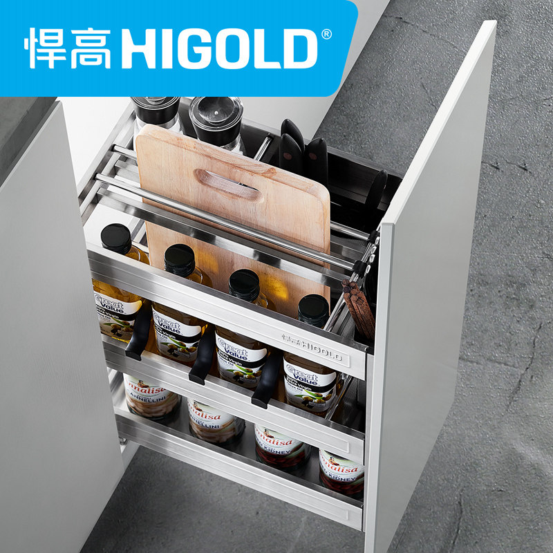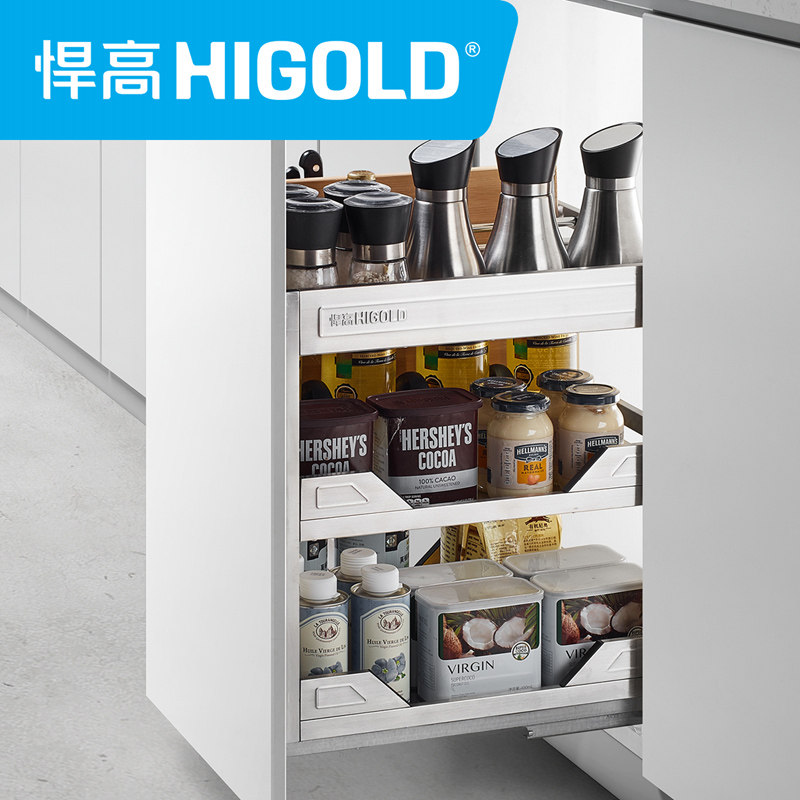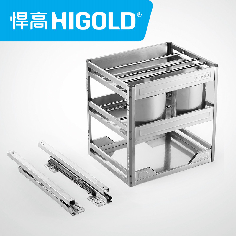 Humvee Kitchen Overall Cupboard Pull Basket Double 304 Stainless Steel Drawer Buffer Seasoned basket Flavors Containing shelf
