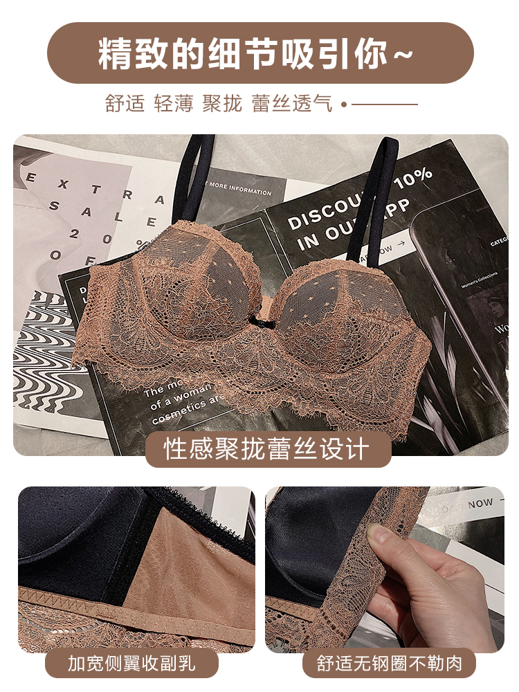 Small breasts gathered without steel ring lingerie suit adjusted to receive the baby girl's sexy lace meleback lingerie women don't run the cup