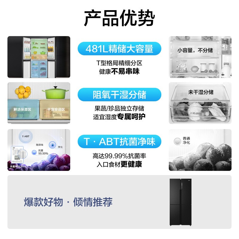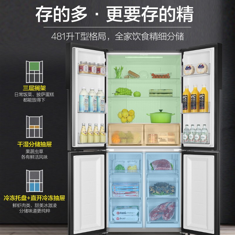 Haier refrigerator household four-door cross-open air-cooled frost-free ultra-thin frequency conversion BCD-481WGHTDD9D9U1