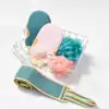 Blue three-piece set Green three-piece set Pink three-piece set Rub back strip (single set) Rub back strip (two sets) Loofah brand (set of sets) Loofah brand (single set)