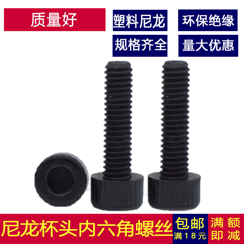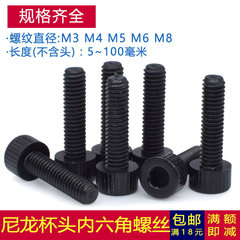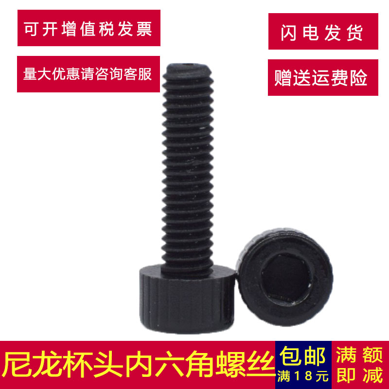 M4M5M6M8 Black Nylon Inner Hex Screw Cup Head Cylindrical Head Knurled Hand Screw Plastic Insulating Bolt Glue