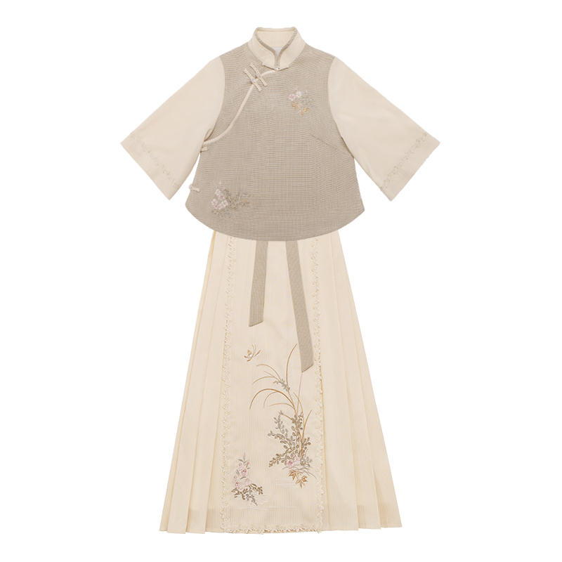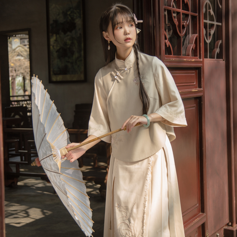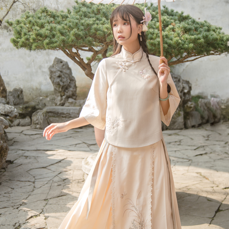 Sichuan Dei Time: Four Seasons Song Reengrave Qipao Blouse Blouse Blouse female short One-piece half-body dress Chinese Wind suit woman