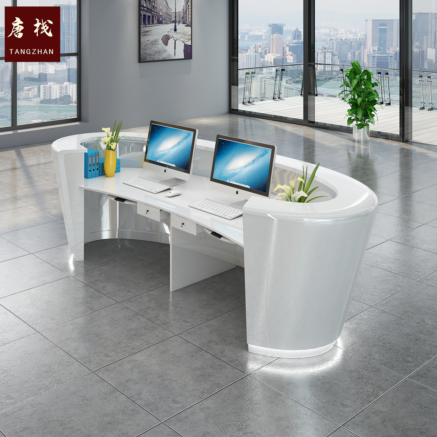 Guangzhou white baking paint front desk company reception desk bar beauty salon welcome desk cashier arc front desk customization