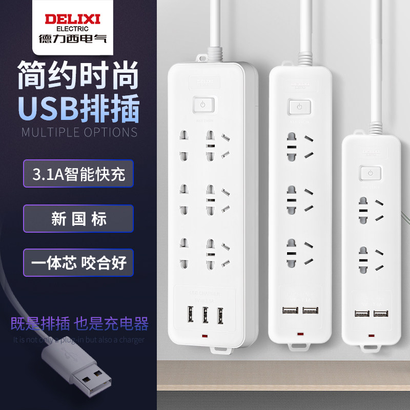 Delixi socket USB porous function household with line socket panel intelligent wiring board overload protection