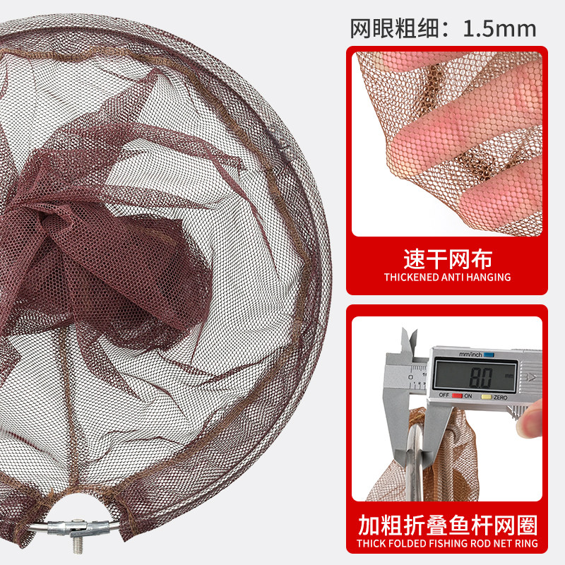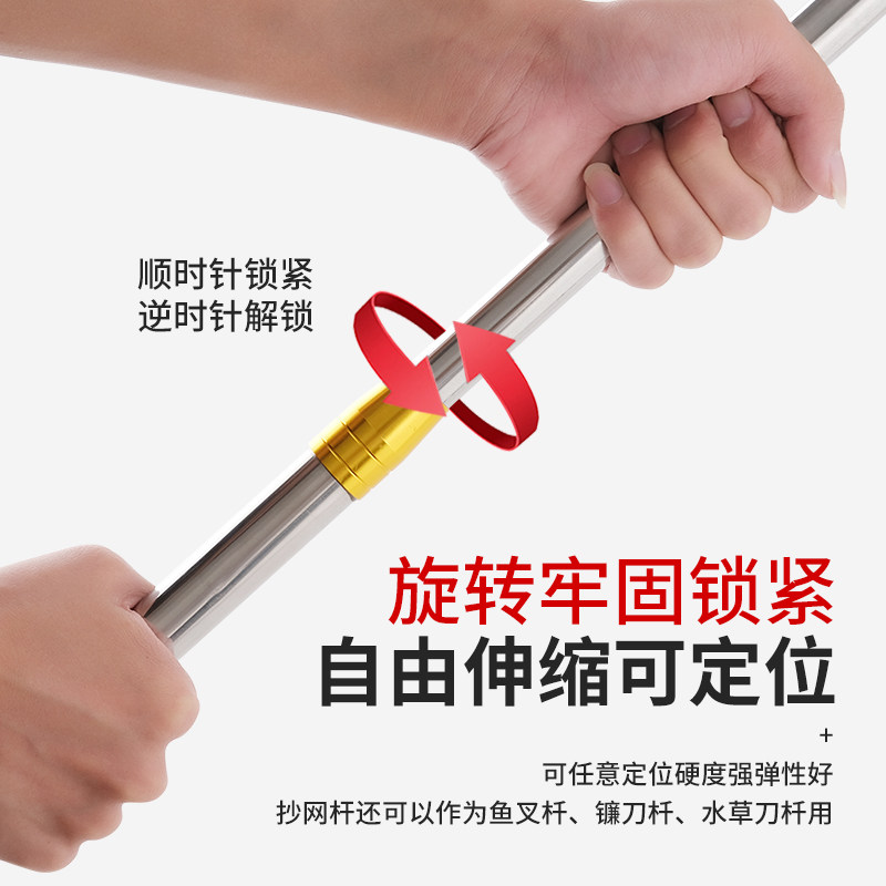 Stainless steel fishing copy net rod fishing net bag telescopic copy net rod folding head fishing net copy fish net fishing gear