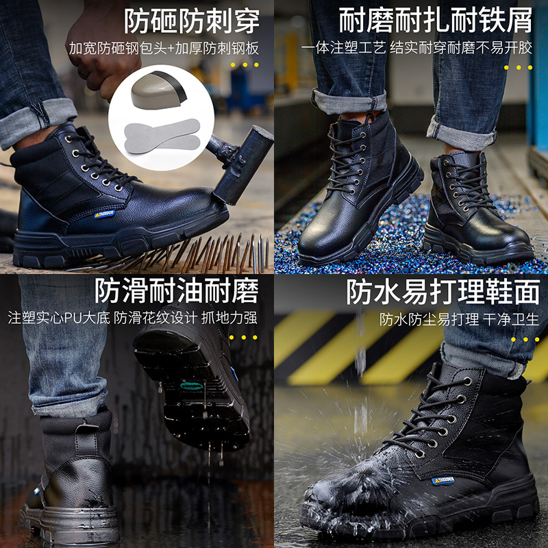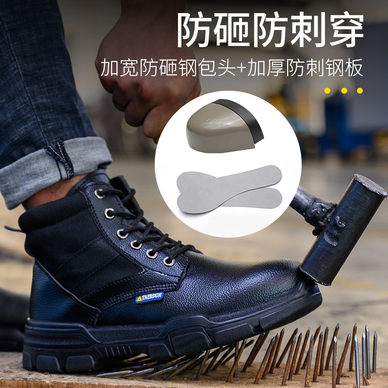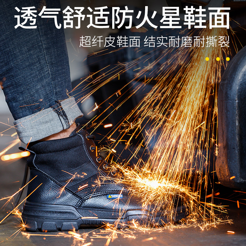 Labor Shoe Men High Cylinder All Season With Anti-Smashing Puncture Cotton Shoes Ladle Head Winter Plus Suede Winter Worksite Work