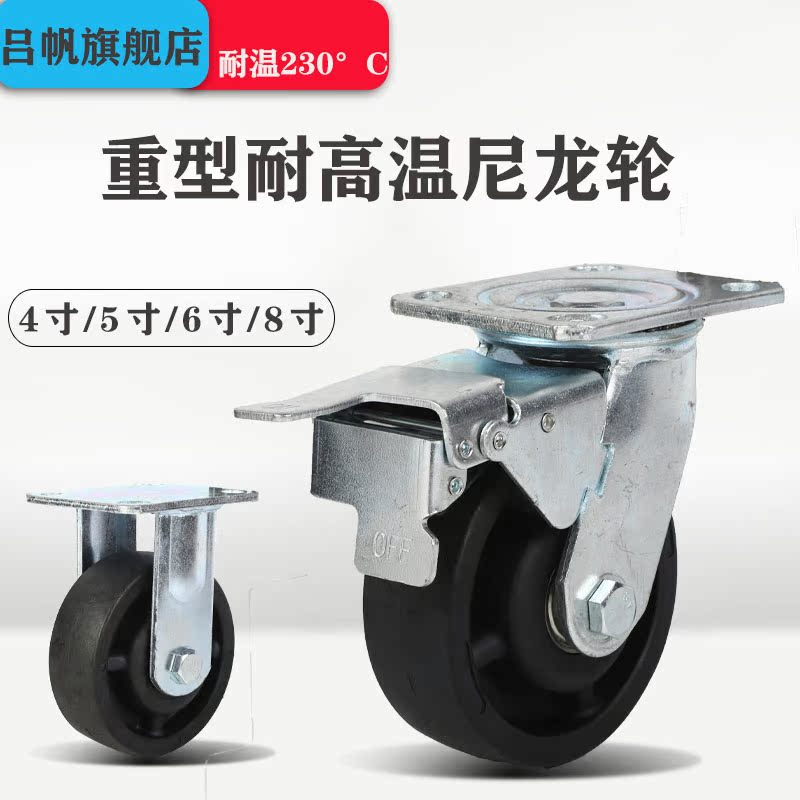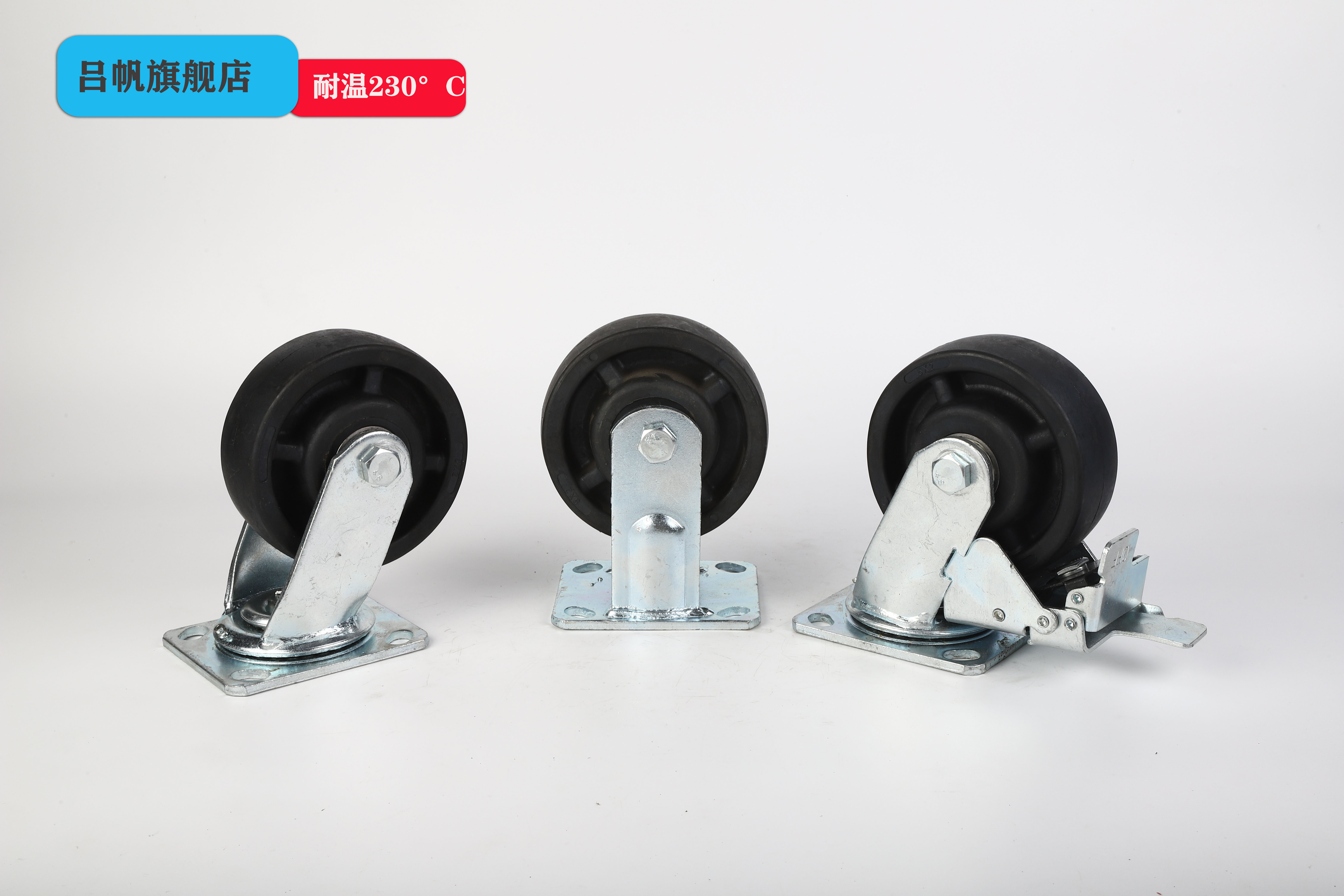 Heavy 4 inch 5 inch 6 inch high temperature resistant wheel resistant to 200-degree universal wheel black glass fiber nylon oven caster wheel