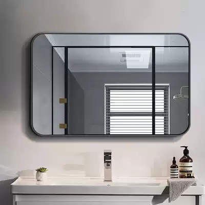 Nordic wrought iron bathroom mirror Wall-mounted powder room mirror washstand wall-mounted rounded square mirror makeup mirror Bathroom mirror