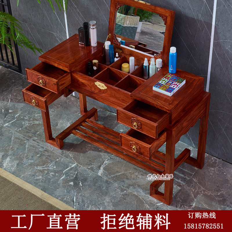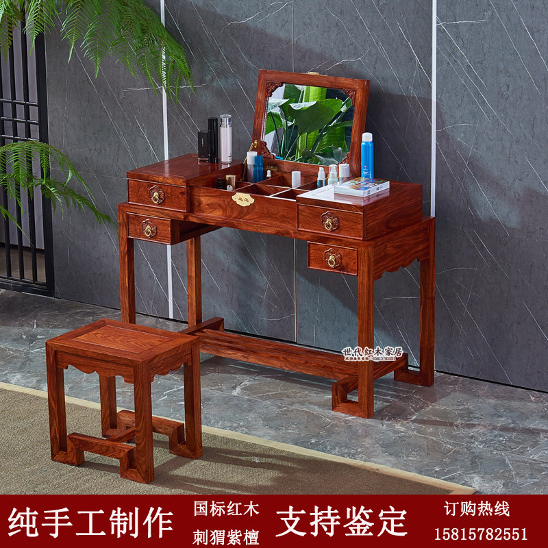 Mahogany dresser hedgehog rosewood dresser table chair solid wood new Chinese bedroom clamshell makeup table rosewood classical