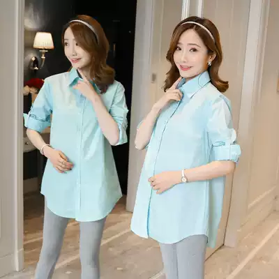 Pregnant women's shirt work clothes pregnant women's fashion wild lapel shirt long sleeve shirt spring and autumn clothes New Tide mother