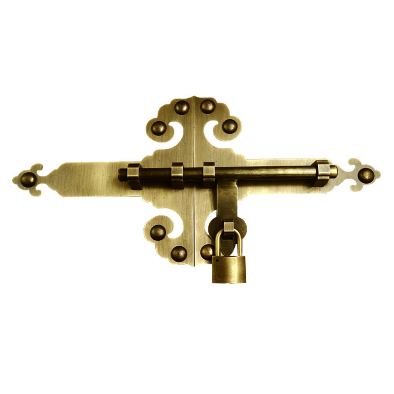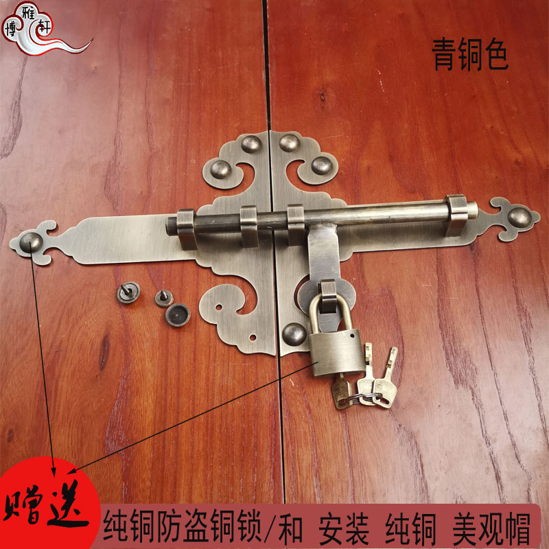 Pure copper bolt Chinese imitation antique wood door copper bolt lock old door bolt insert lock ancient building 4-in-house lock catch retro