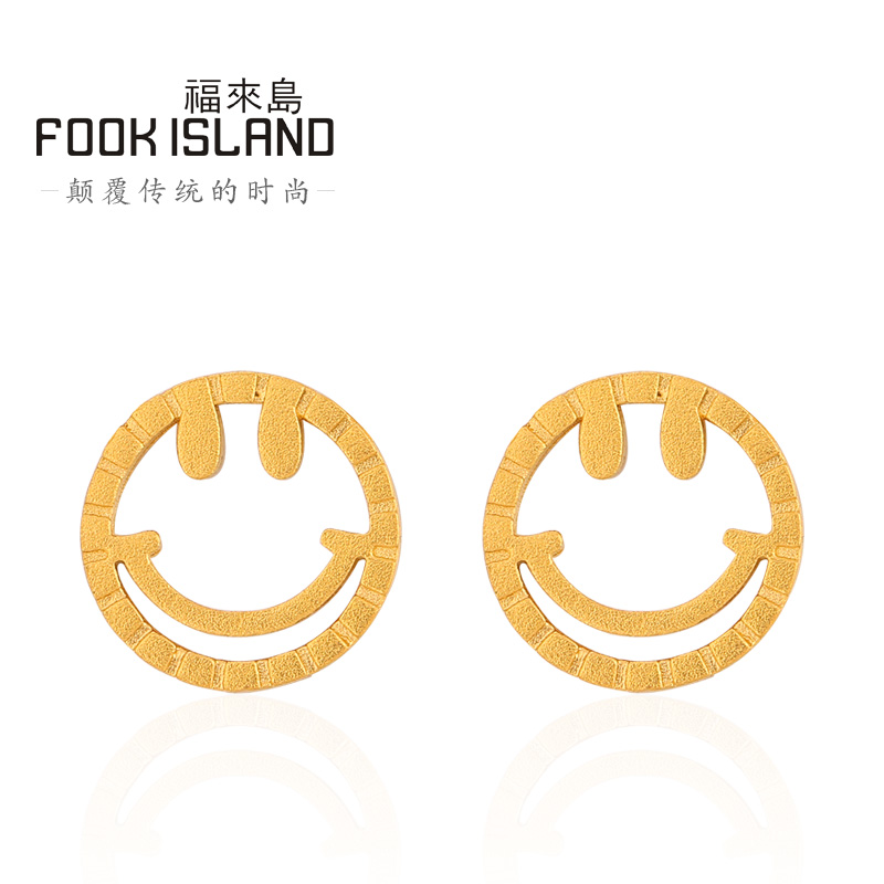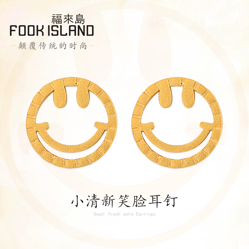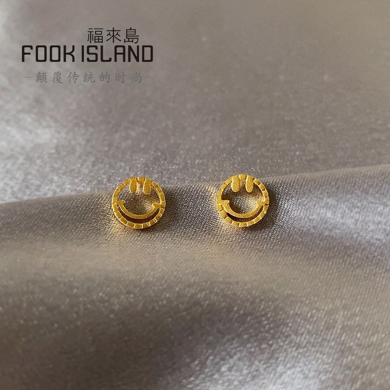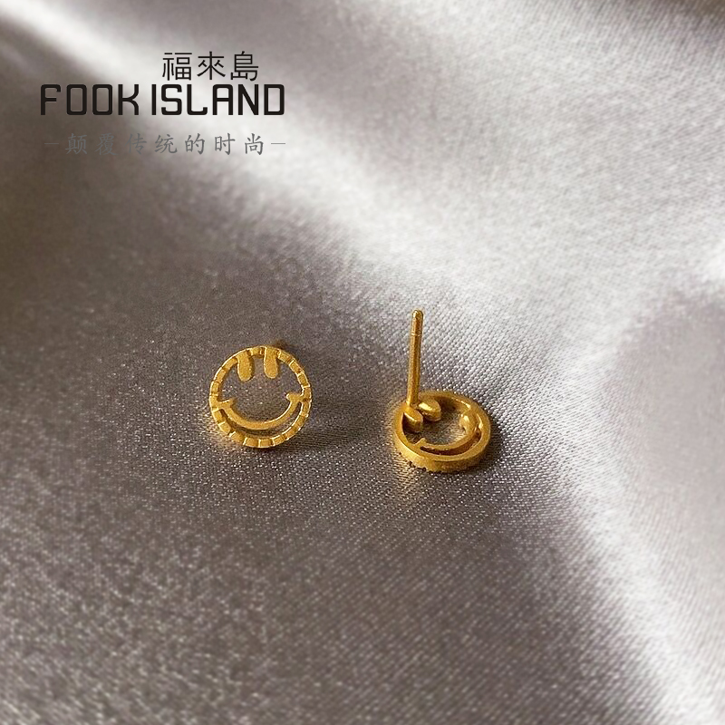 Fulai Island Gold Stud Earrings Pure Gold 999 Smile Earrings Ancient Method Gold Expression Smiley Ear Insert Pure Gold Earrings Women's