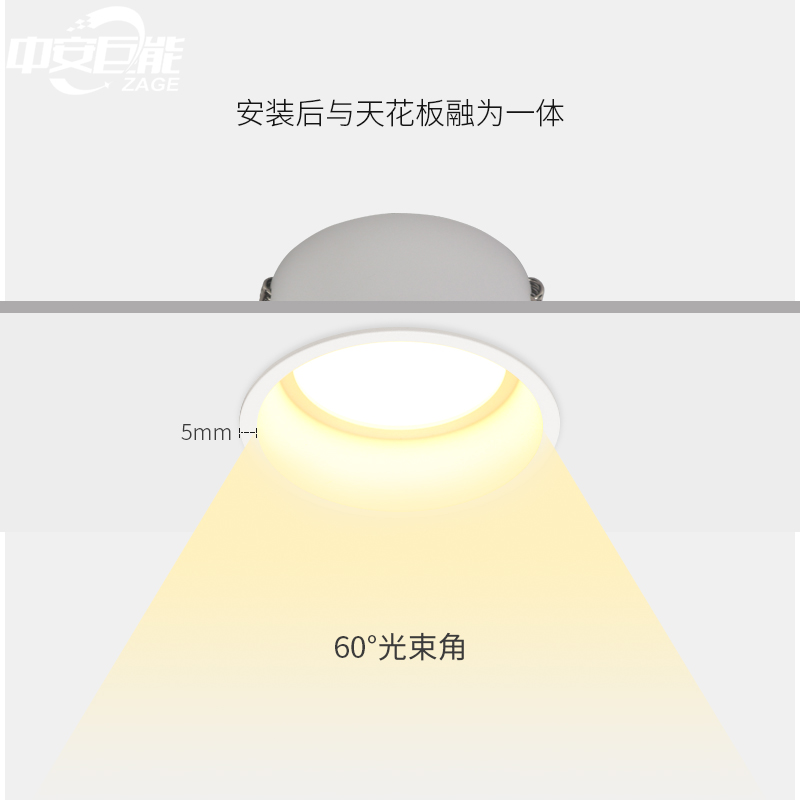LED recessed downlight simple hole light 20W anti-glare spotlight ultra-thin COB ceiling light living room aisle background wall