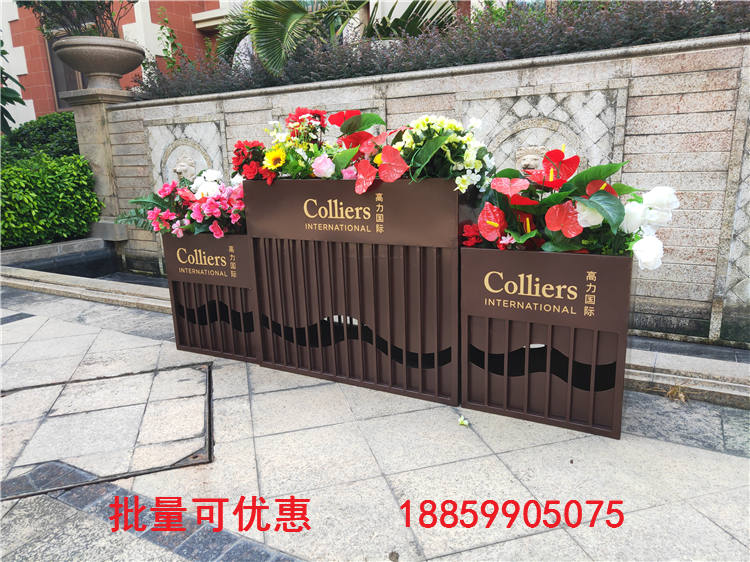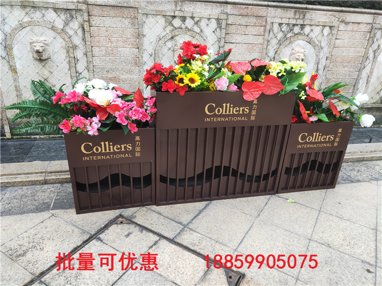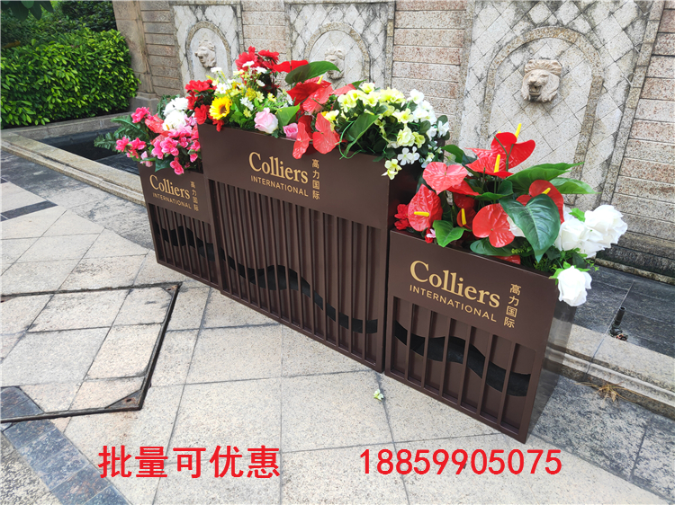 Outdoor flower box combination custom flower slot square rectangular iron flower pool Commercial Street sample House Display Center planting box flower bed
