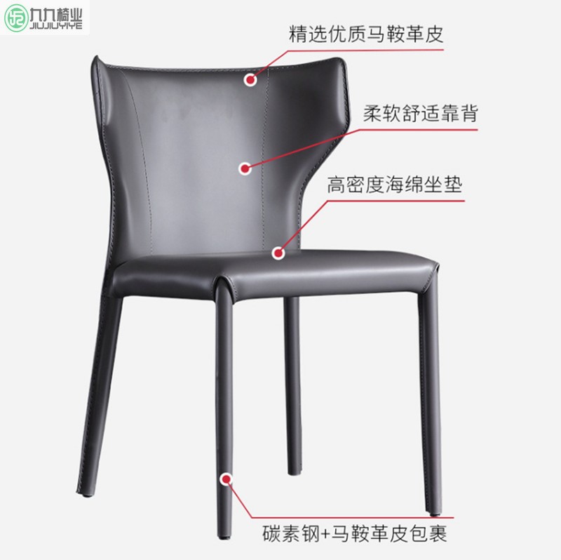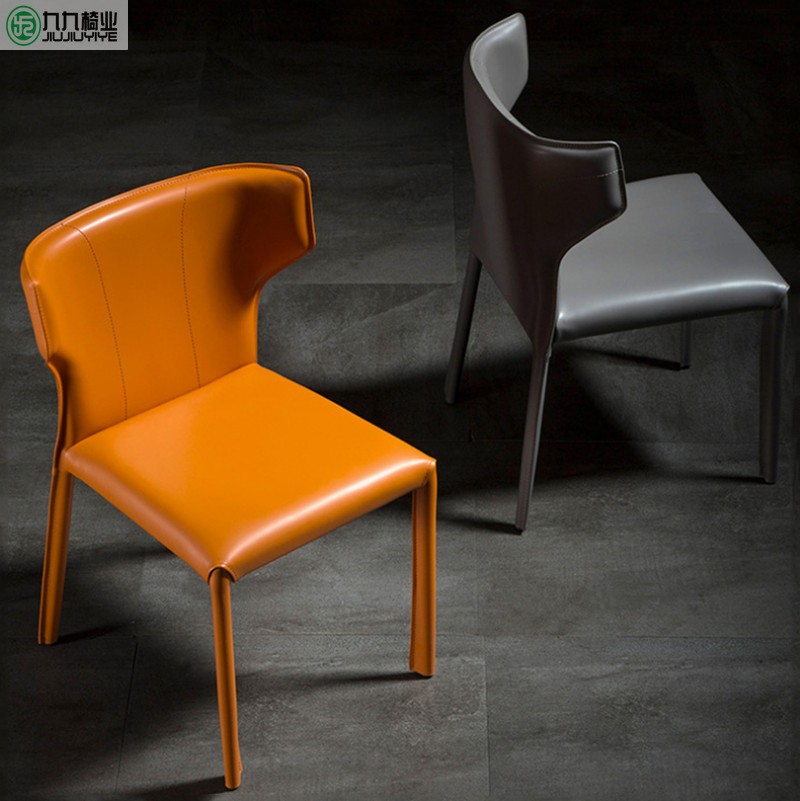 Italian industrial style chair Nordic light luxury dining chair home leisure dining room black leather chair is net red creative chair