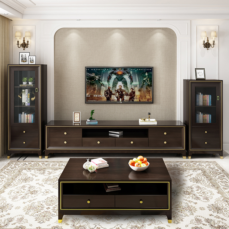 American-style coffee table TV cabinet combination solid wood light luxury post-modern living room floor cabinet new Chinese-style bedroom simple small apartment
