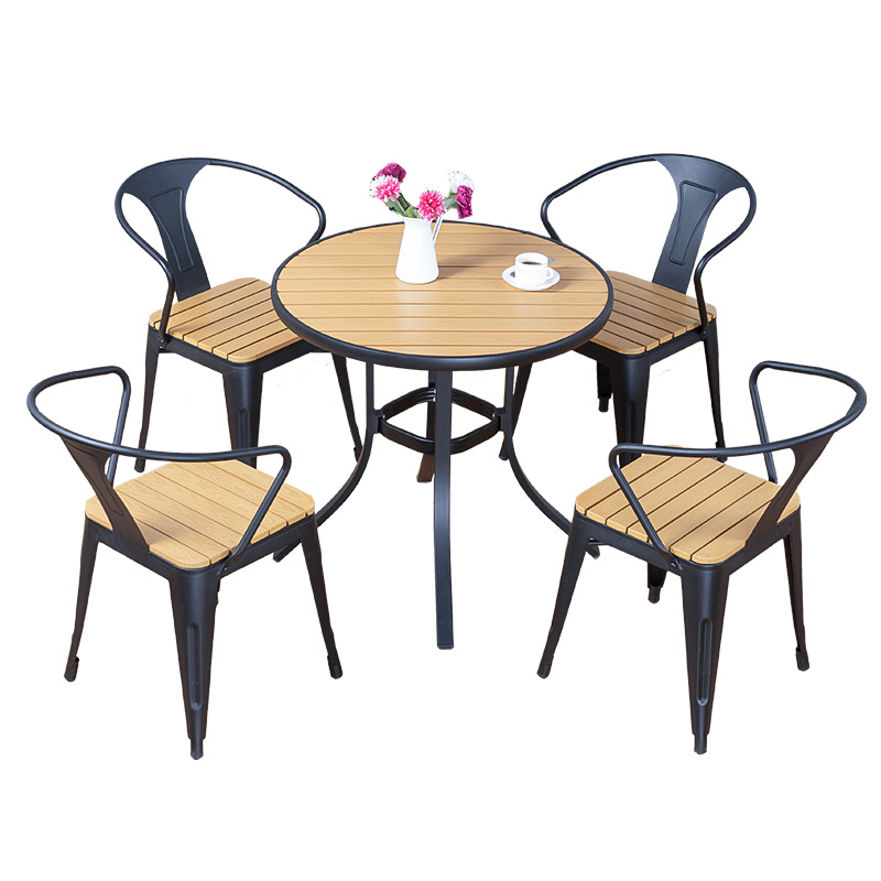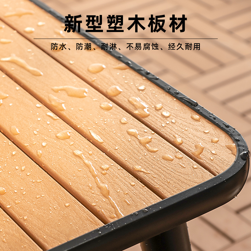 Xinjushi outdoor plastic wood tables and chairs outdoor courtyard garden villa outdoor terrace leisure waterproof sunscreen iron table and chairs