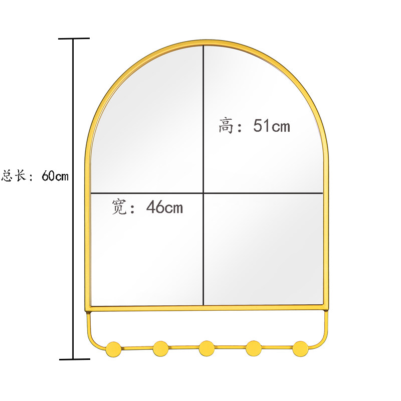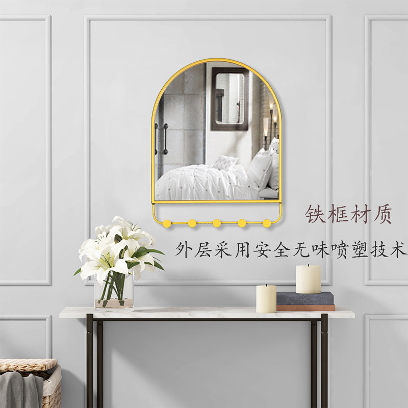 Nordic iron frame mirror Powder room mirror shelf Bedroom home makeup mirror Narrow edge mirror Wall hanging coat hook one