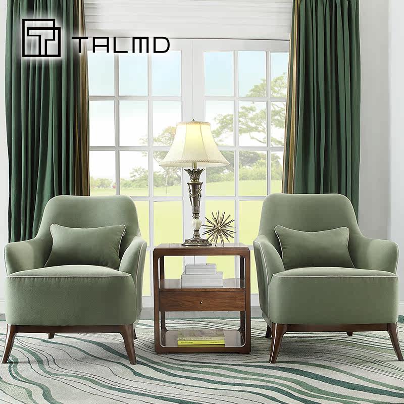 TALMD living room fabric sofa simple solid wood mobile high elastic lazy chair fabric size can be customized