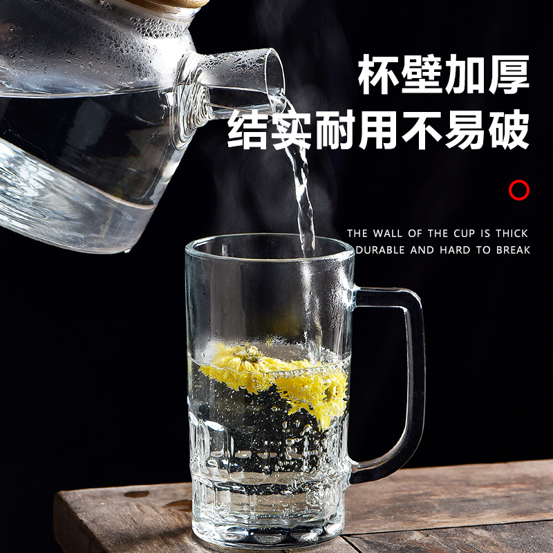 Green apple beer cup with glass-cup home water glass suit thickened handle tea cup Zer cup heat resistant 6 only