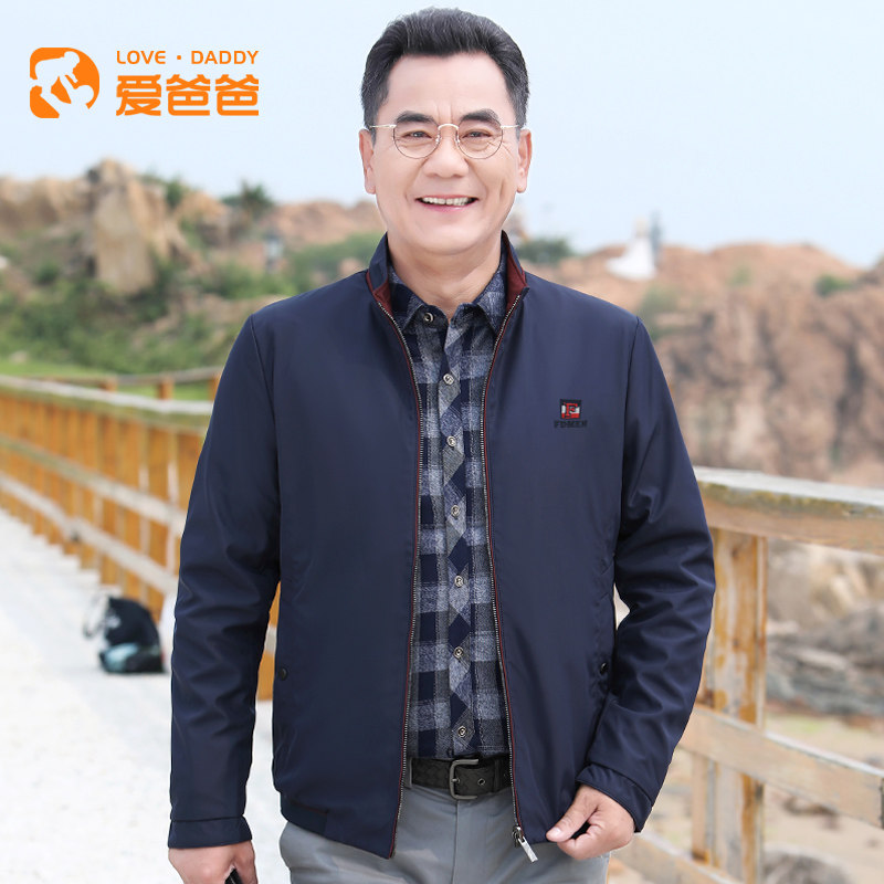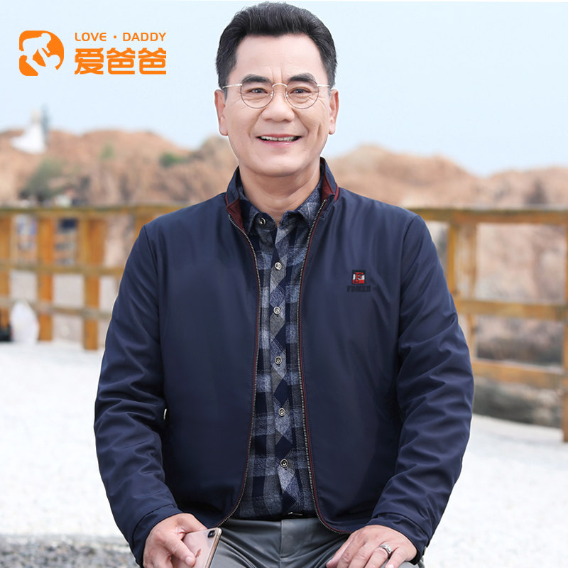 Love dad middle-aged jacket men's Spring and Autumn New lapel casual jacket middle-aged and elderly men's father autumn jacket
