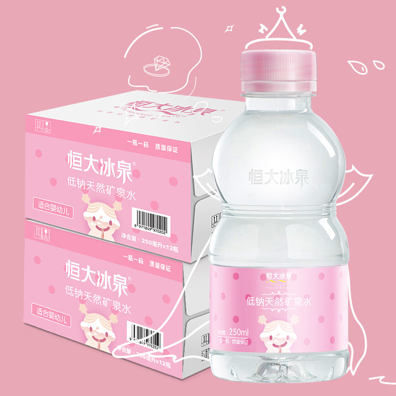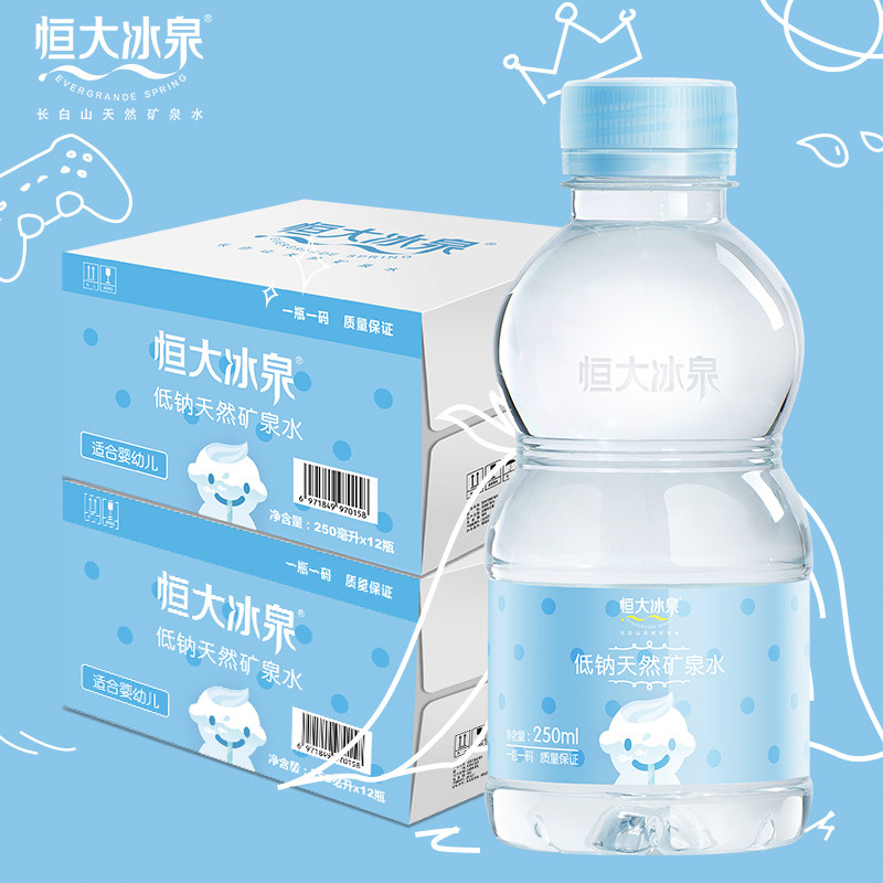 Evergrande Ice Spring Baby Water Baby Water Natural Low Sodium Mineral Water 250mL*12 vials*2 Full Box Batch Special Price