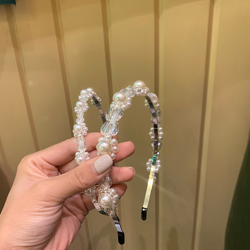 Crystal Pearl Hair Hoop Fairy Sen Department Super Fairy Versatile Outer Hair Clip Temperament Pressure Hair Non-slip Korean Hair Accessories Headdress