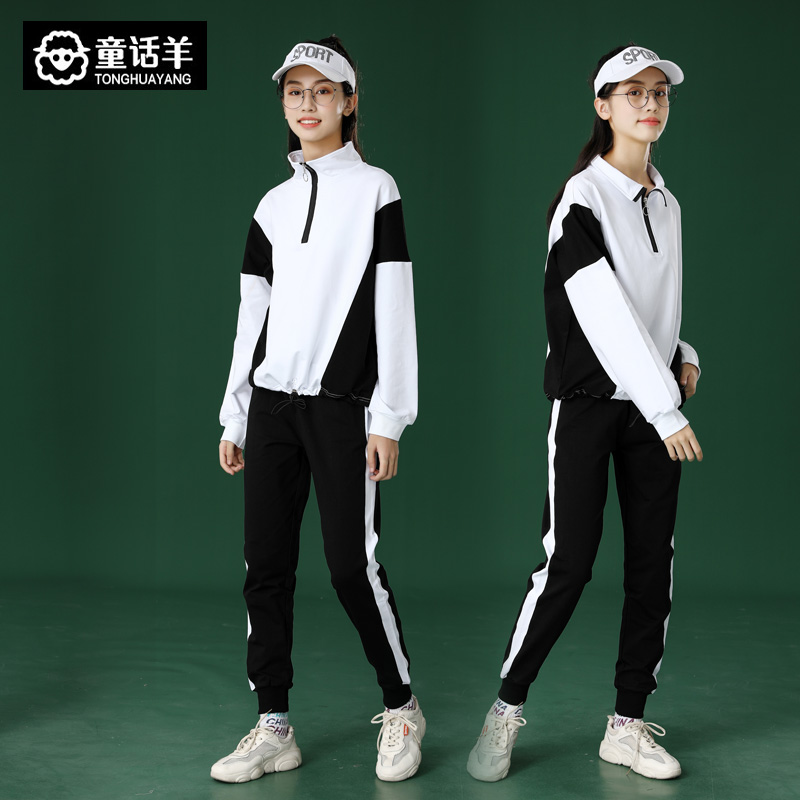 Junior high school students big boy girl student suit 2021 spring fashion sports 13 casual loose 12 two-piece suit 15 years old