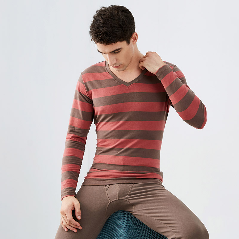 Top piper couple striped heating clothing women's autumn clothing sanitary pants suit cotton striped autumn and winter bottoming cotton sweater thin