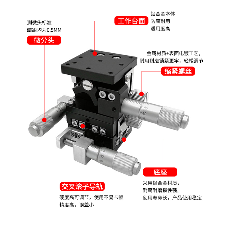 LD60 40 90 125 XYZ axis displacement platform three-axis optical manual fine-tuning horizontal lift mobile slide