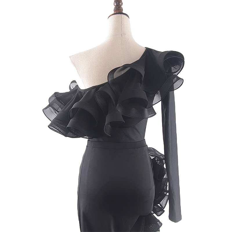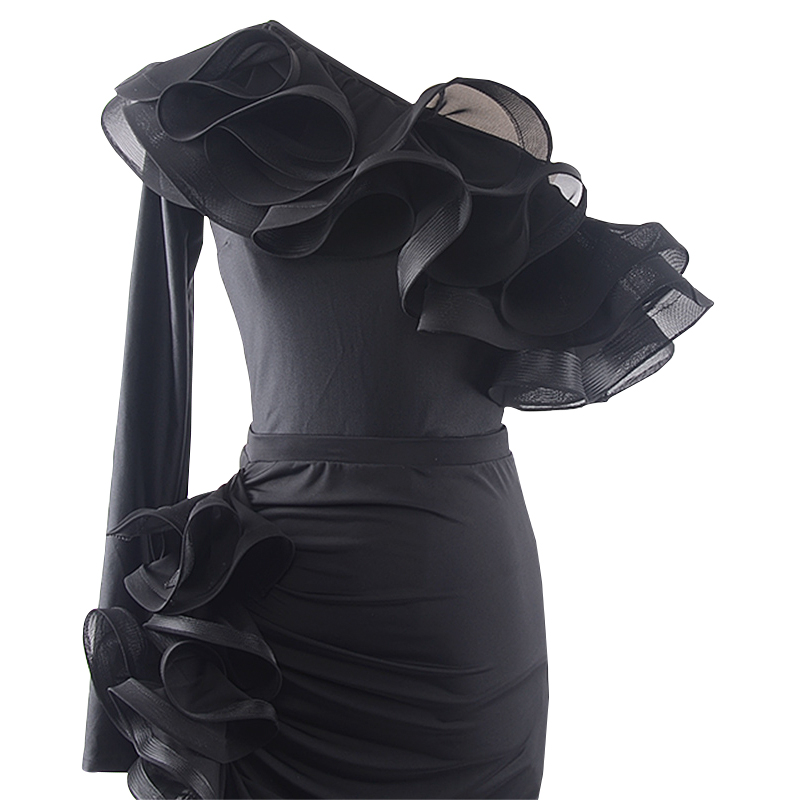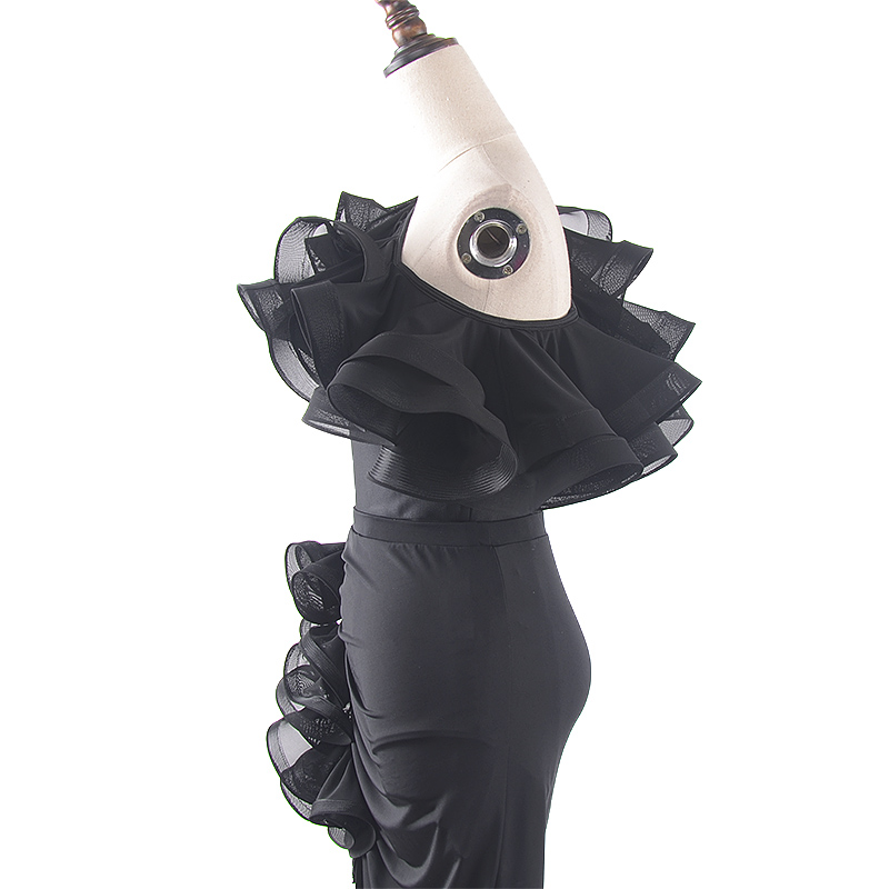 Latin Dance Exercises Women's New Autumn/Winter Social Dance Sloped Collar Shoulder Single Side Sleeves Lotus Leaf Side Morden Biblouse Blouse