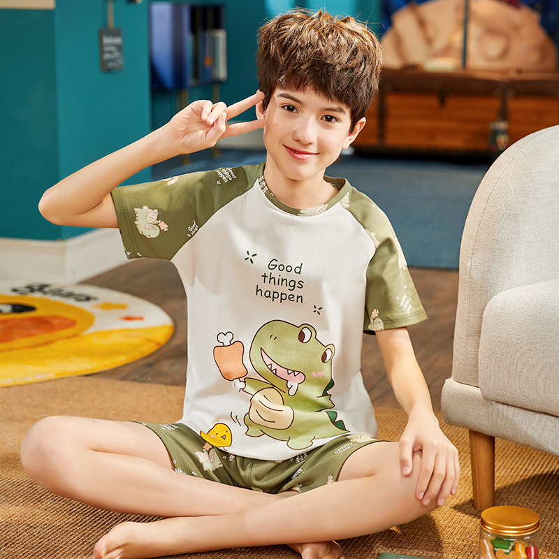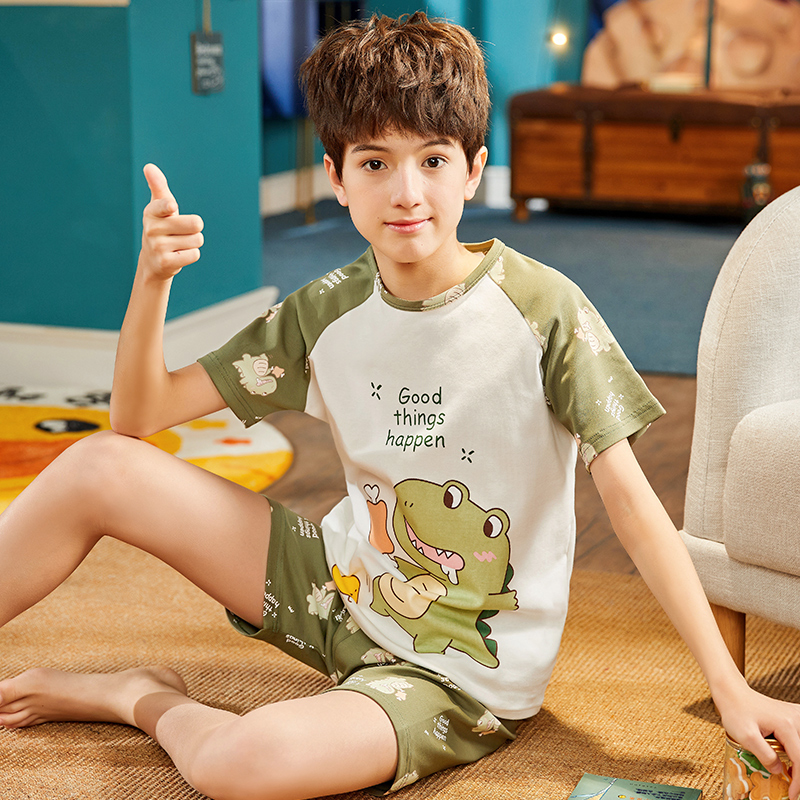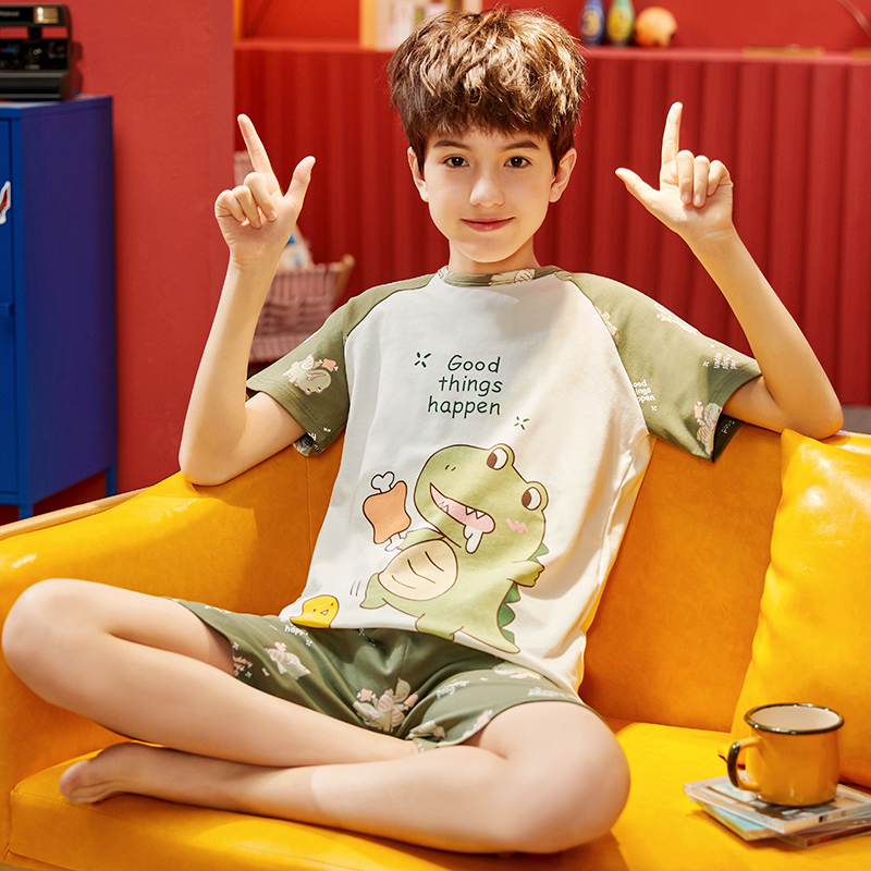 Children's pyjamas boy spring summer pure cotton slim short sleeve suit CUHK child toddler summertime full cotton cartoon home clothes