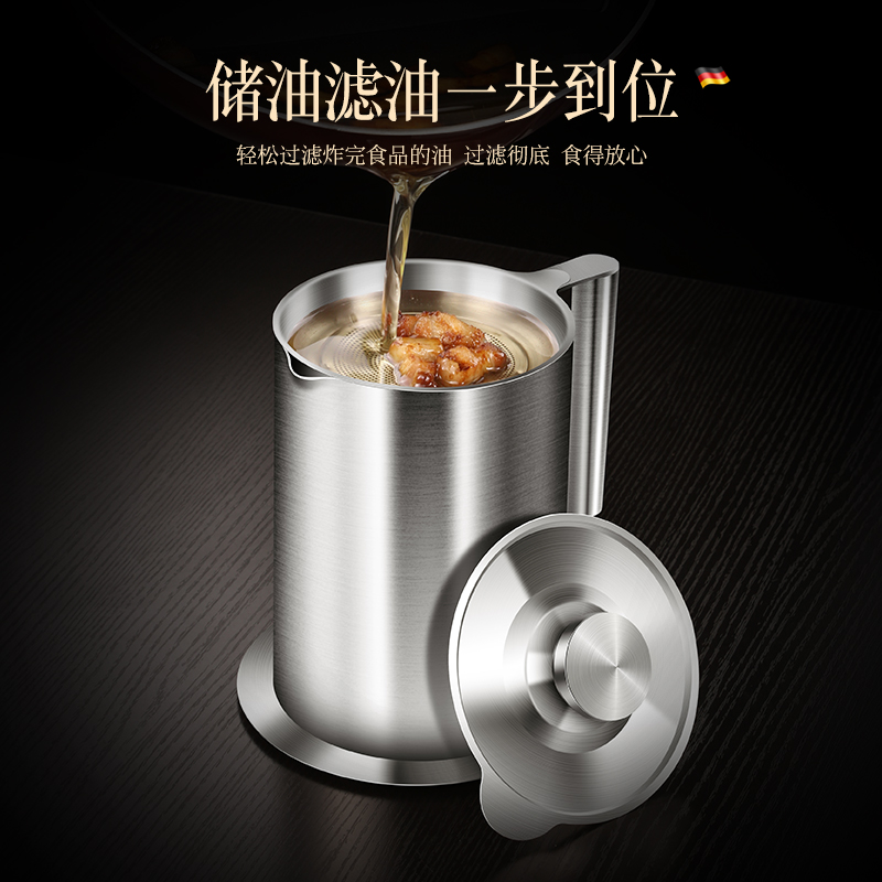 304 stainless steel filter oil residue pot Oil storage tank Kitchen household edible oil bottle Large capacity filter oil pot with lid