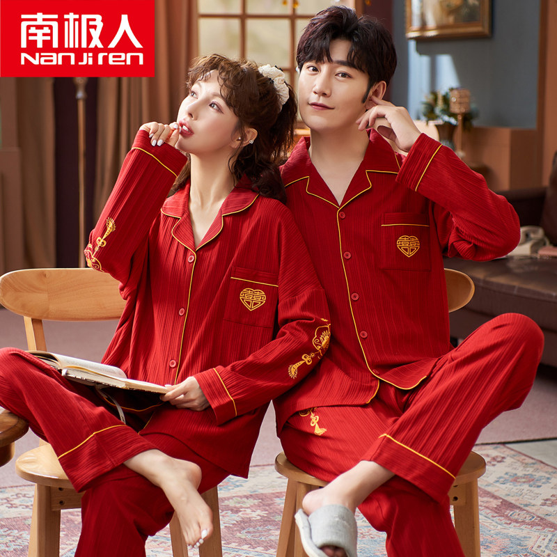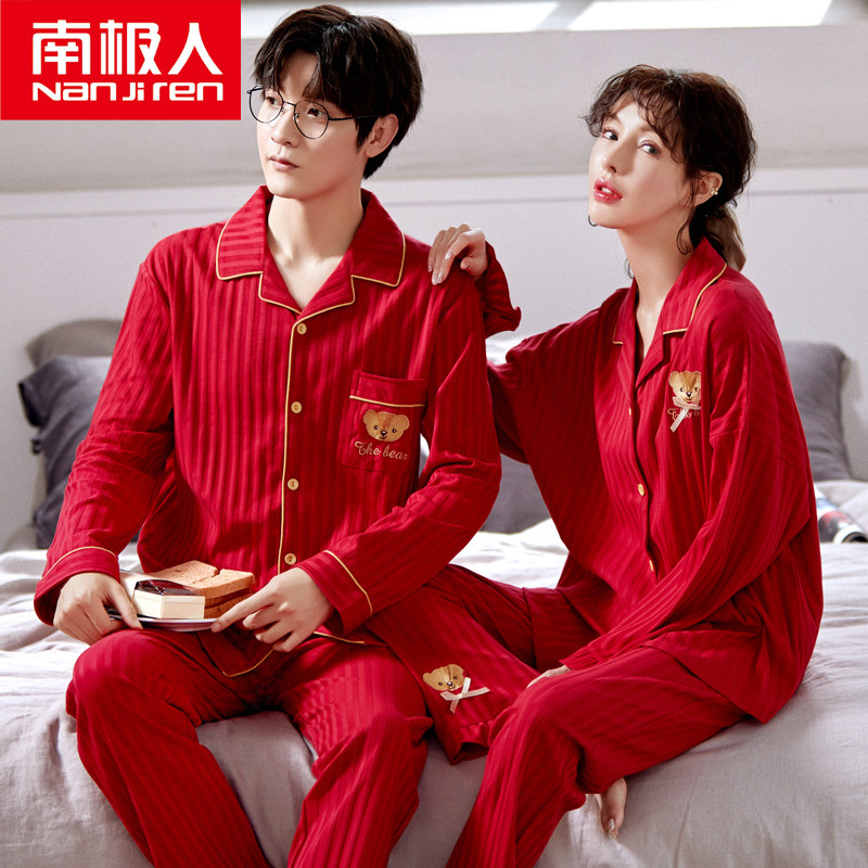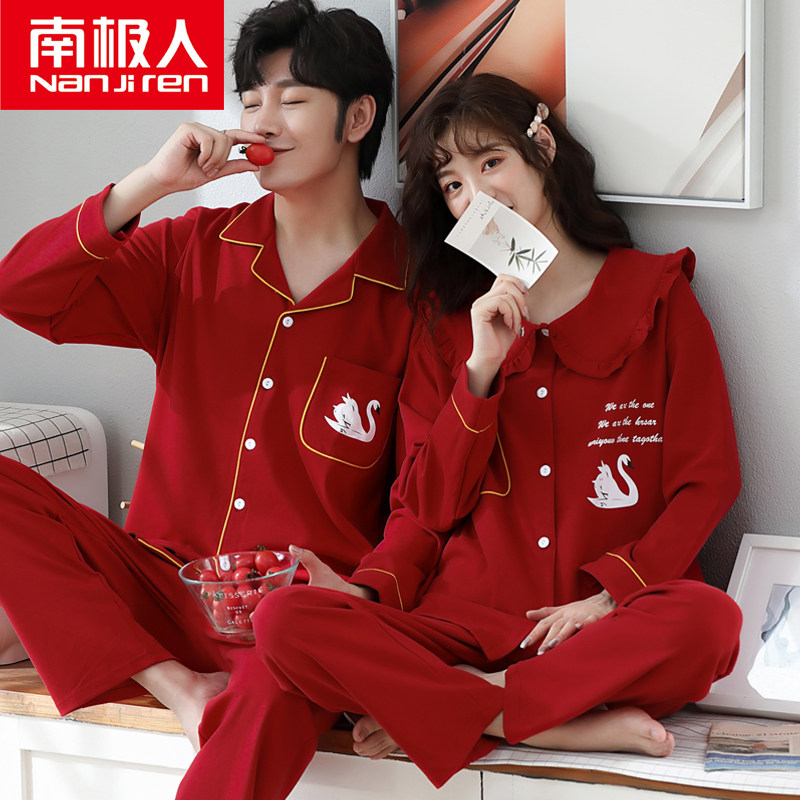 Antarctic couple pajamas woman spring and autumn cotton long sleeves married new marriage suit red life year men's home dress